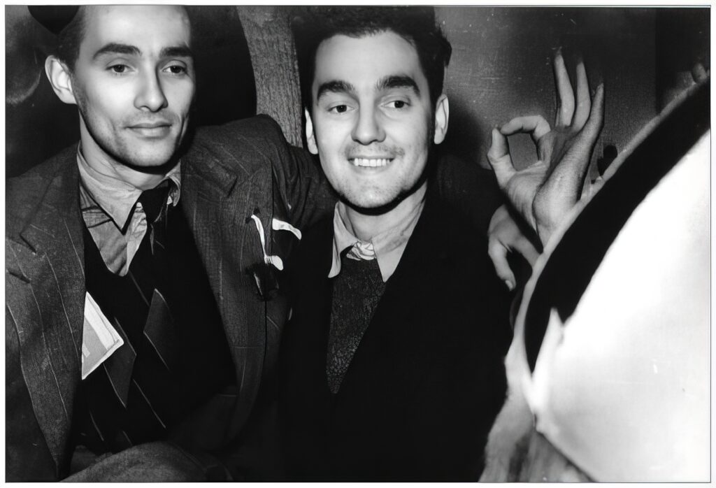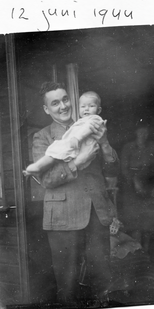 - Oberdak (links) met Franklin Coslett op het Sinterklaasfeest in 1944 op hun onderduikadres in Amsterdam.